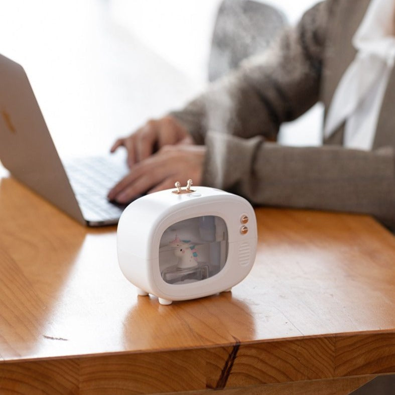 La incorporación más reciente a nuestra línea de humidificadores, el Humidificador Mascotas, es un mini humidificador con forma de televisor que incluye una pequeña mascota en su interior, ¡con una iluminación bellísima!